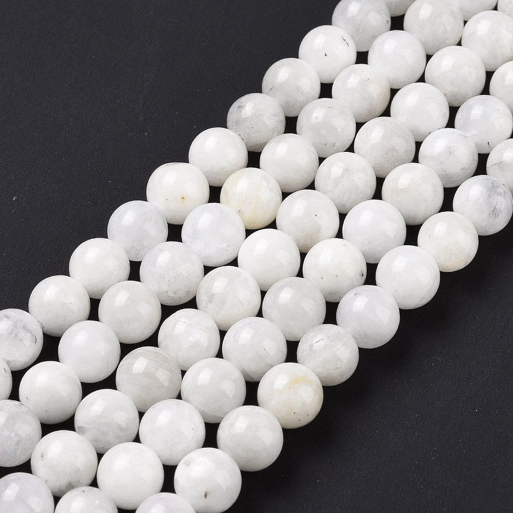 Ontdek de magische glans van deze natuurlijke regenboog maansteen kralen (8mm). Elke kraal is met zorg geslepen om de subtiele iriserende schittering – ook wel adularescentie genoemd – prachtig tot leven te brengen. De zachte witte en zilverachtige tinten met een blauwe gloed geven jouw sieraden een elegante, dromerige uitstraling.